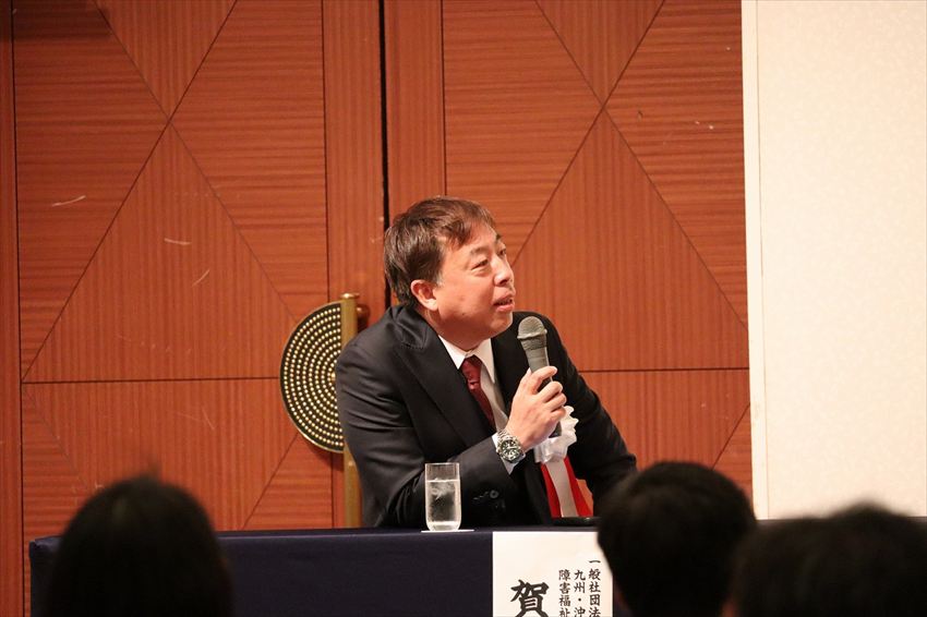 第1部の設立総会では、九州・沖縄ブロック支部長 素花源之ブロック支部長による開会挨拶に続き、佐藤樹一郎大分県知事をはじめご来賓の方々からのご祝辞、九州・沖縄ブロック 賀村研副ブロック長 による連盟の趣旨・概要紹介、全国介護事業者政治連盟 久野義博会長の挨拶などを通じ、障害福祉サービスの重要性と今後の展望について共有しました。